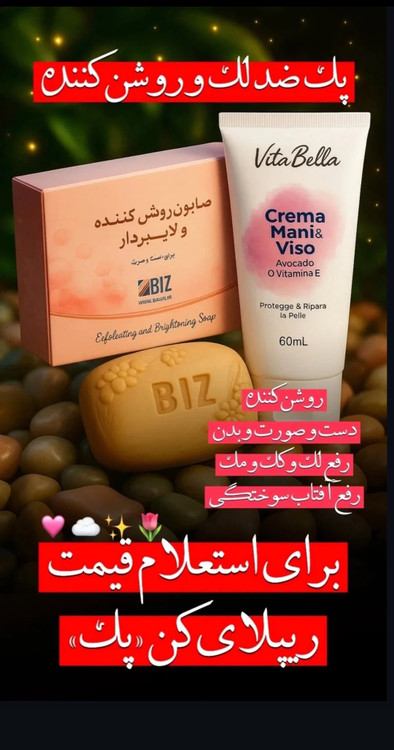 ✔️اگه بدن یا صورتت تیره هست یا لک داری یه پک عالیه و پوستت رو جوانسازی میکنه و حسابی روشن و صاف میکنه🌺
